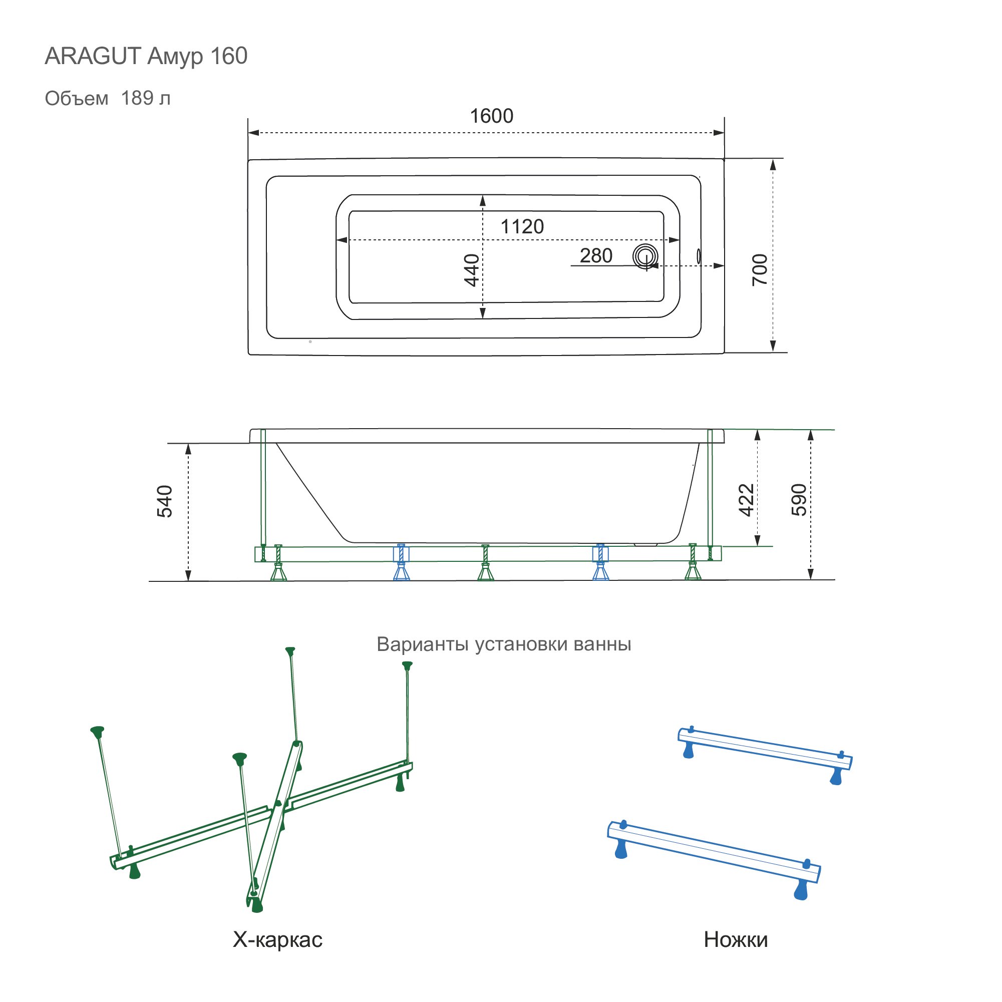 Акриловая ванна ARAGUT Амур 160х70 Щ0000063265