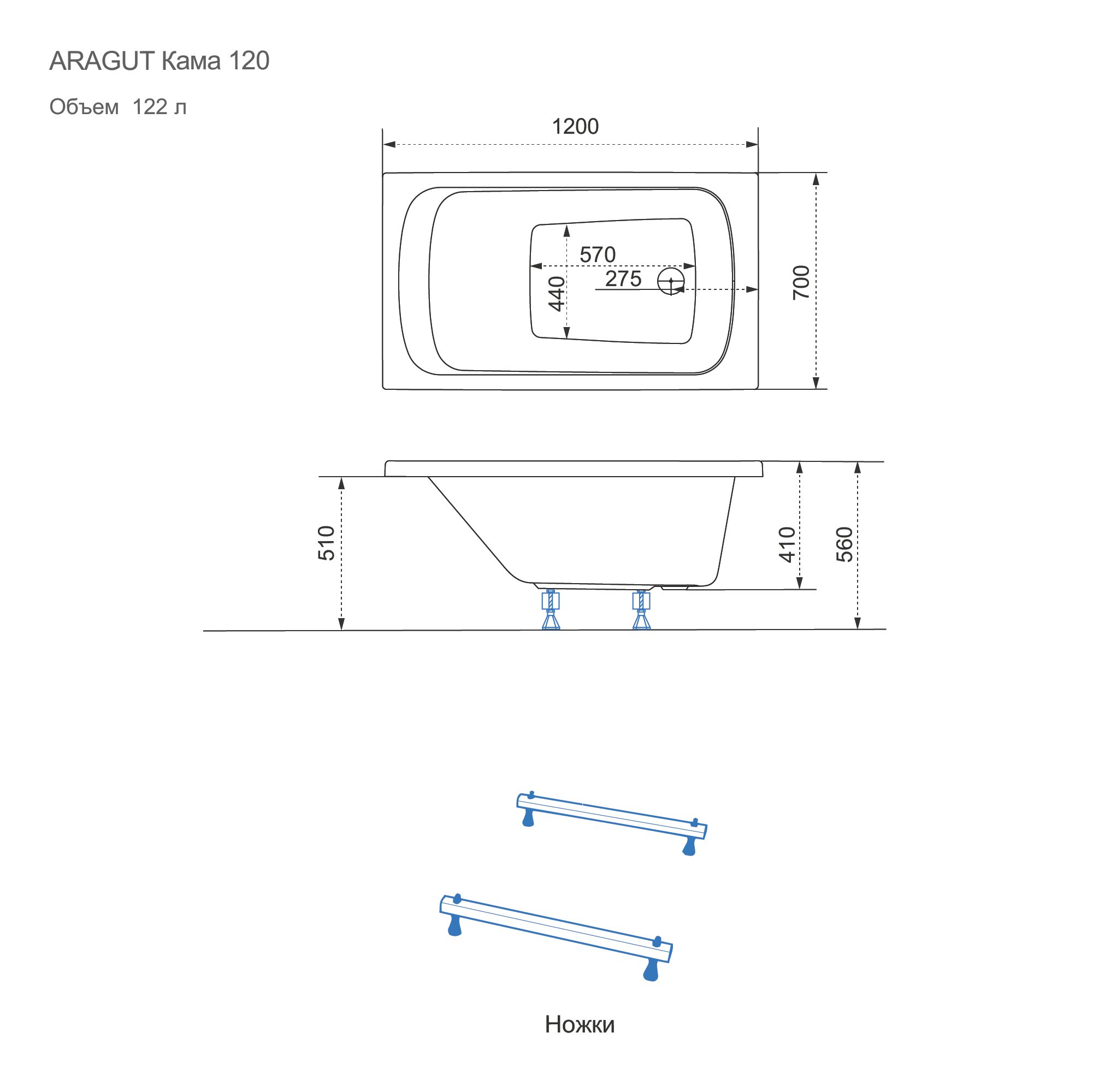 Акриловая ванна ARAGUT Кама 120х70 Щ0000063258