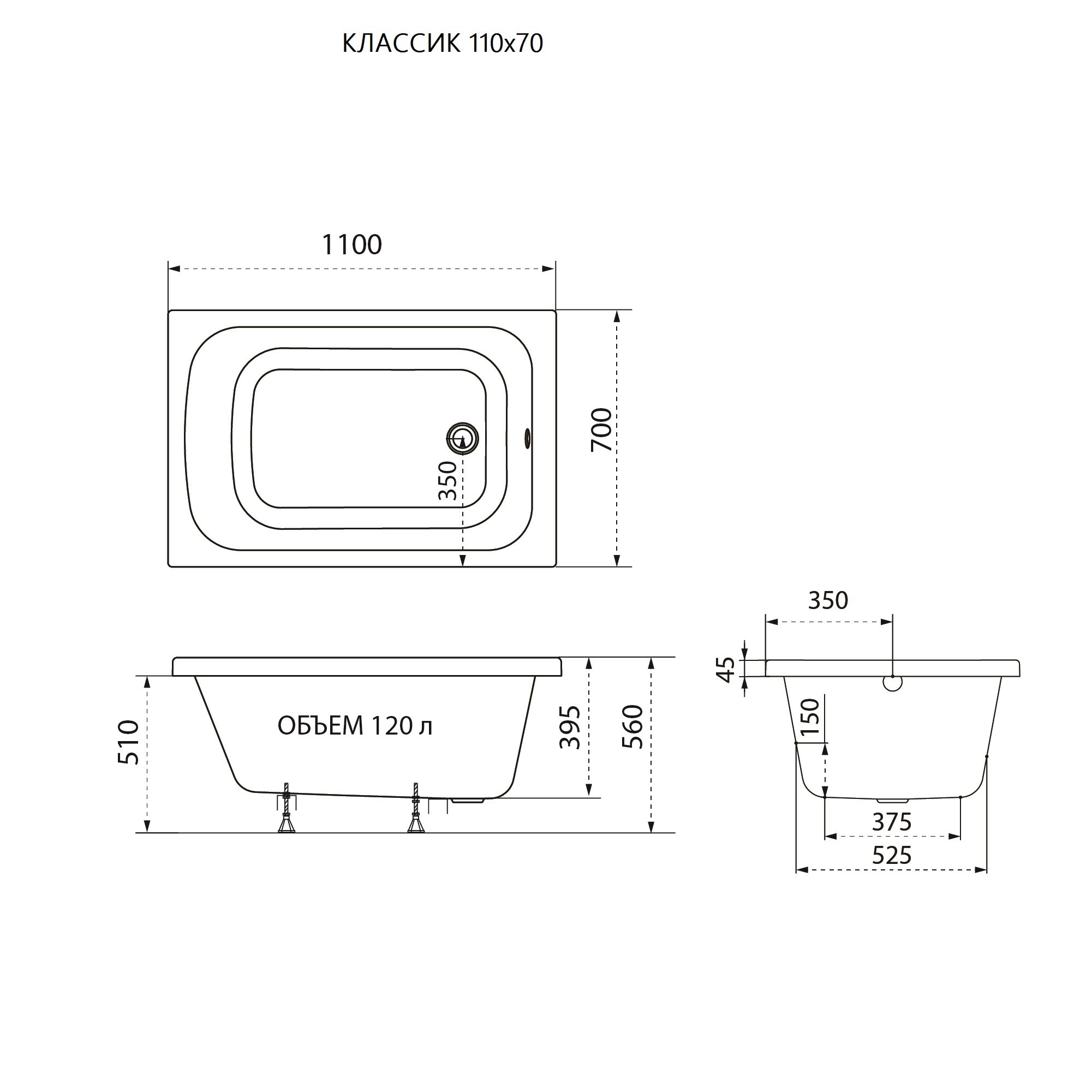 Акриловая ванна ARAGUT Классик 110х70 Щ0000073328