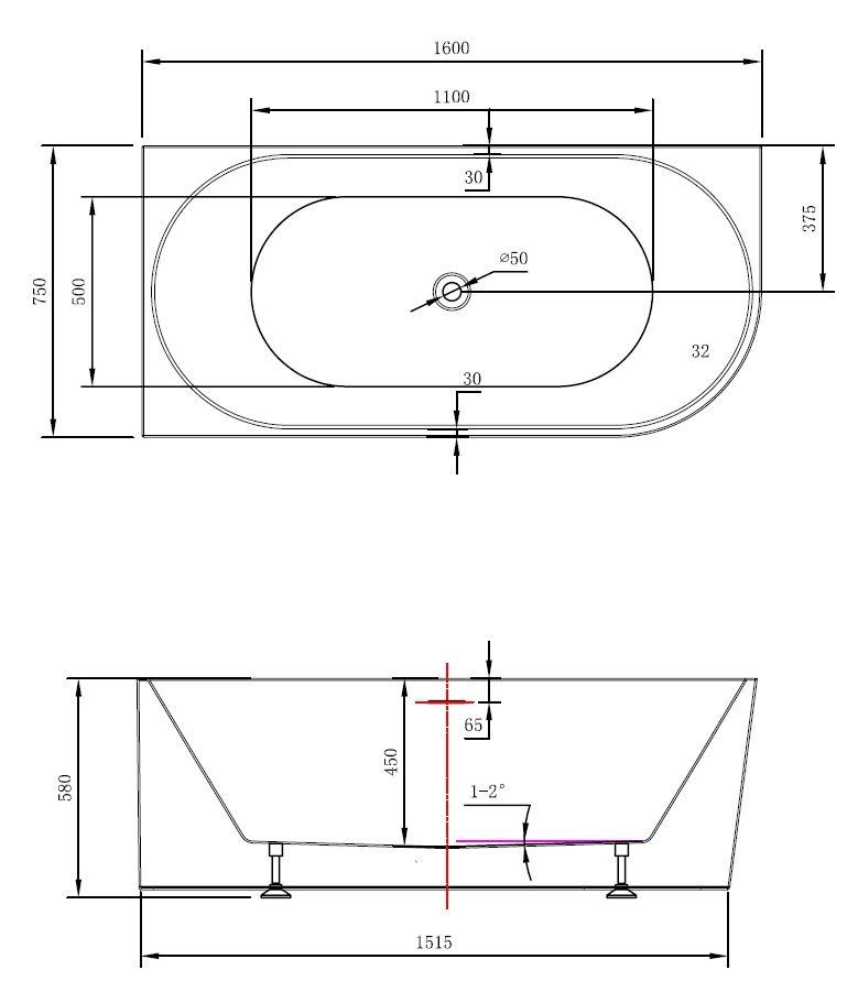 Акриловая ванна Vincea 160х75 VBT-402-1600L