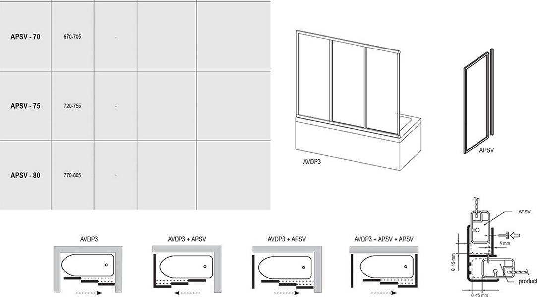 Вы можете добавить к покупке самое необходимое для Боковая стенка для шторки на ванну Ravak Supernova APSV 75 95030102Z1