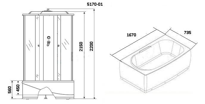 Установка душевого бокса до 180 см. без пара