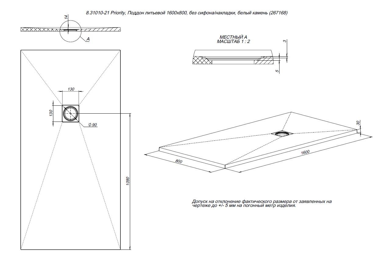 Установка душевого поддона из чугуна/керамики/литьевого мрамора от 110 до 140 см.
