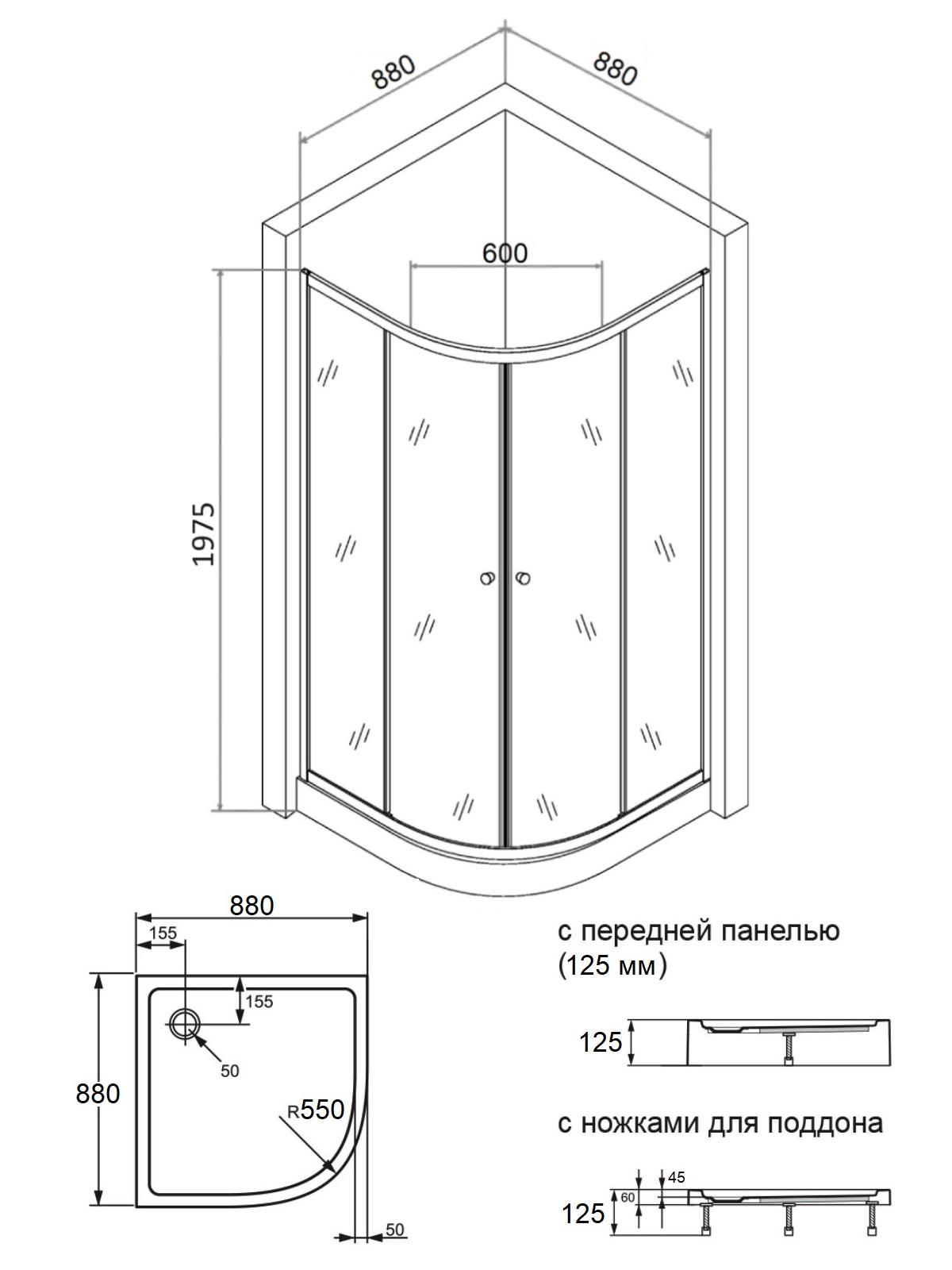 Установка душевого уголка от 120 см. с раздвижными дверьми
