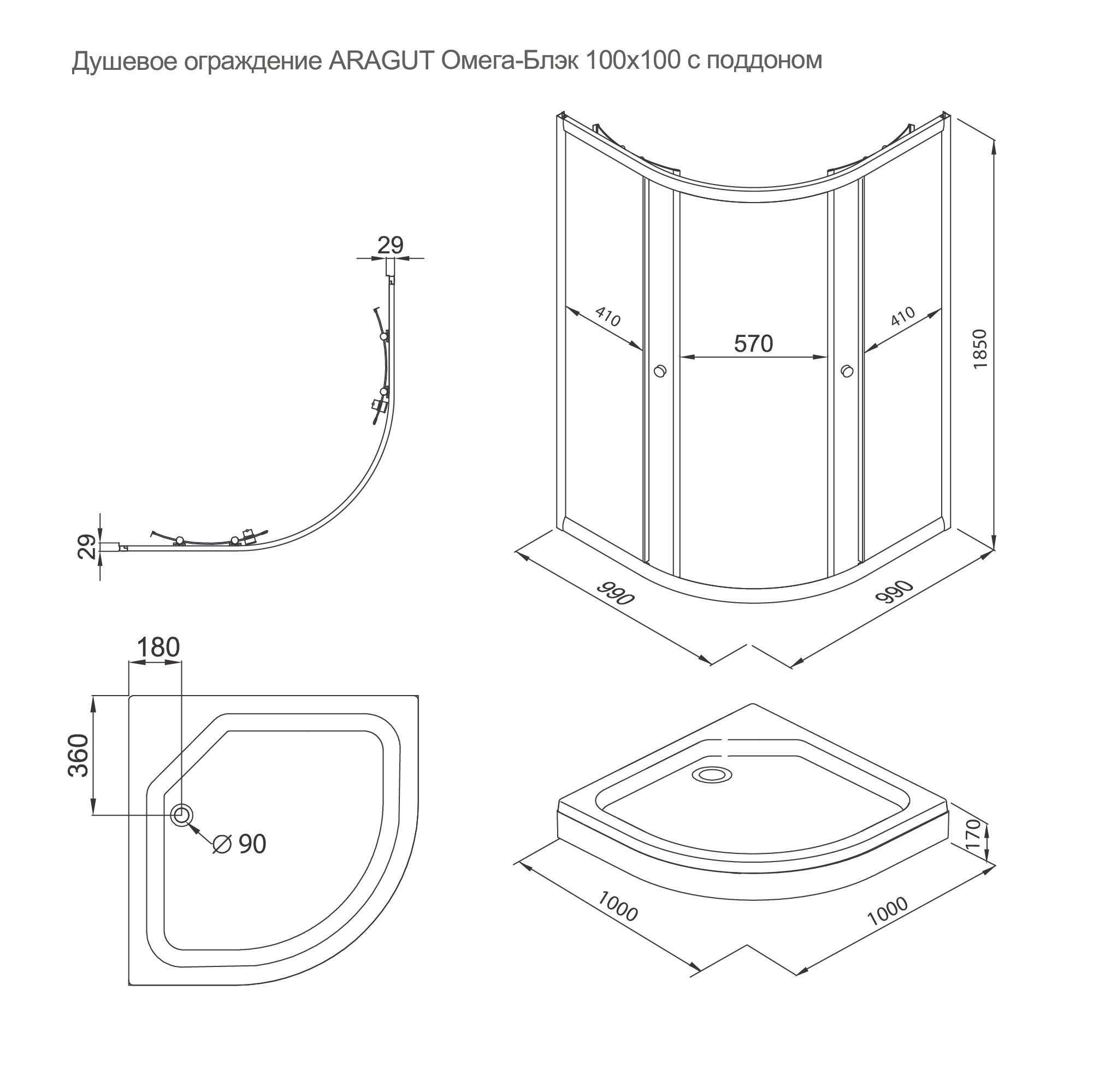 Душевой уголок ARAGUT Омега-блэк 100х100 Щ0000067944