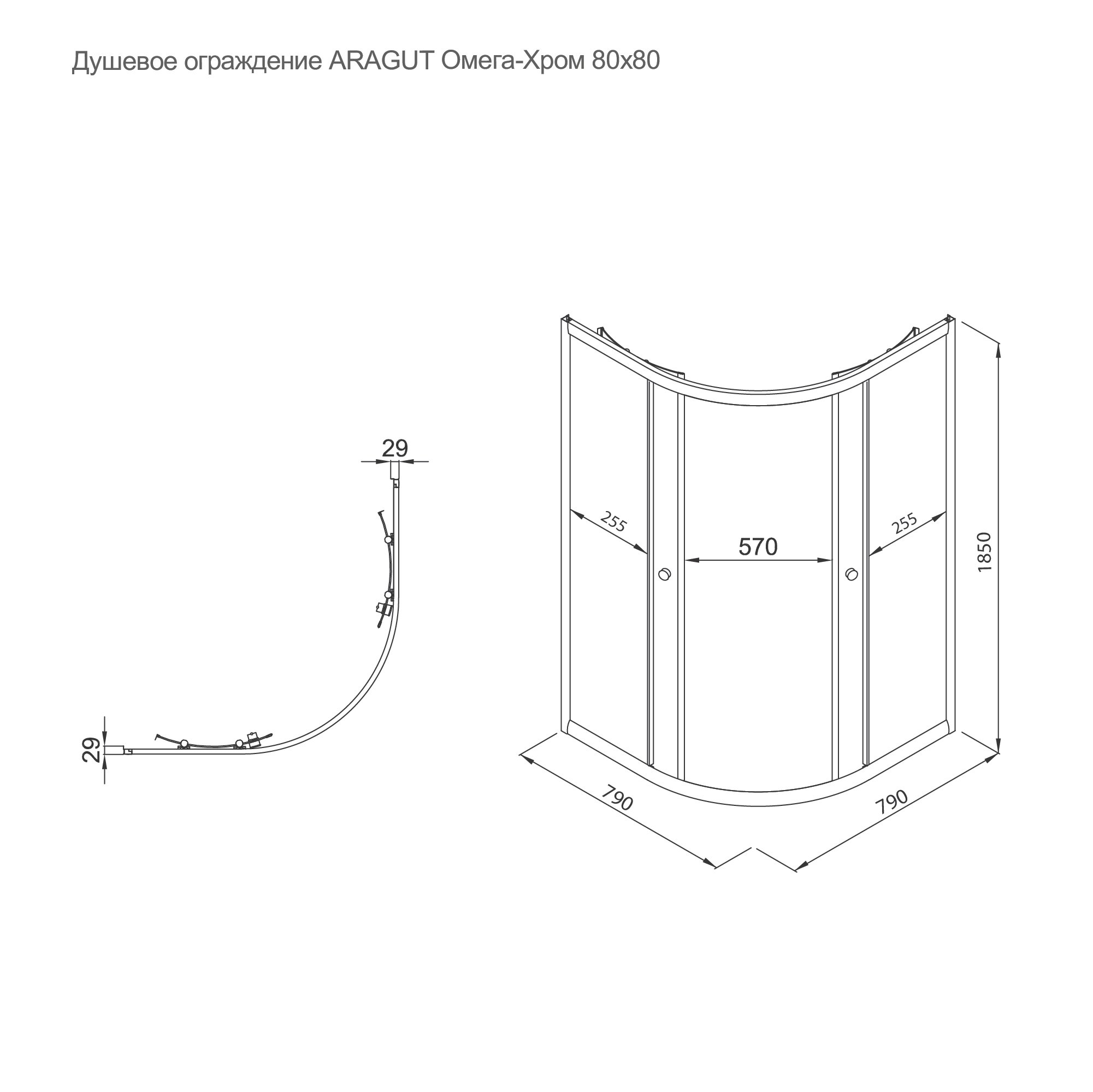 Душевой уголок ARAGUT Омега-хром 80х80 Щ0000067962