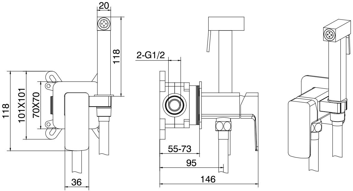 Установка гигиенического душа (со скрытой частью)
