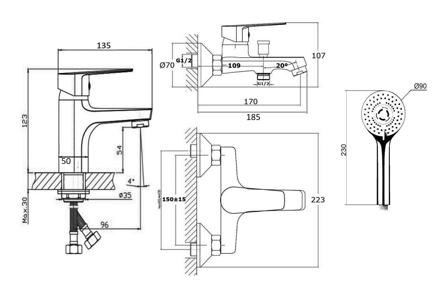 Набор смесителей 3в1 представляет собой комплект сантехнических приборов и аксессуаров для ванной комнаты и состоит, как правило, из следующих устройств: смеситель для ванны, смеситель для умывальника, душевая штанга для крепления лейки душа или же только держатель для лейки, лейка ручного душа и гибкий шланг. Чтобы элементы интерьера ванной комнаты не дисгармонировали между собой и создавали единый, законченный образ, составляющие набора смесителей выполнены в едином дизайнерском стиле.