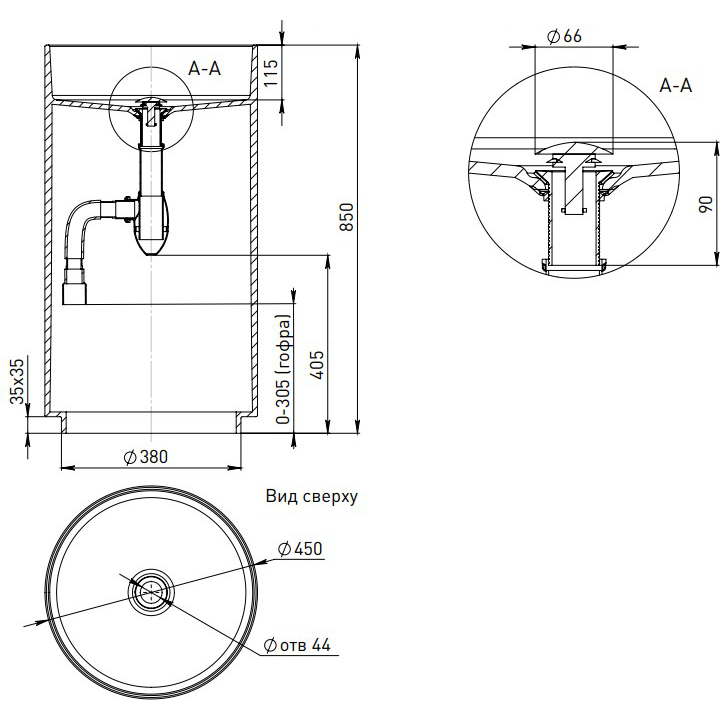Установка открытого декоративного сифона для раковины (без установки раковины)