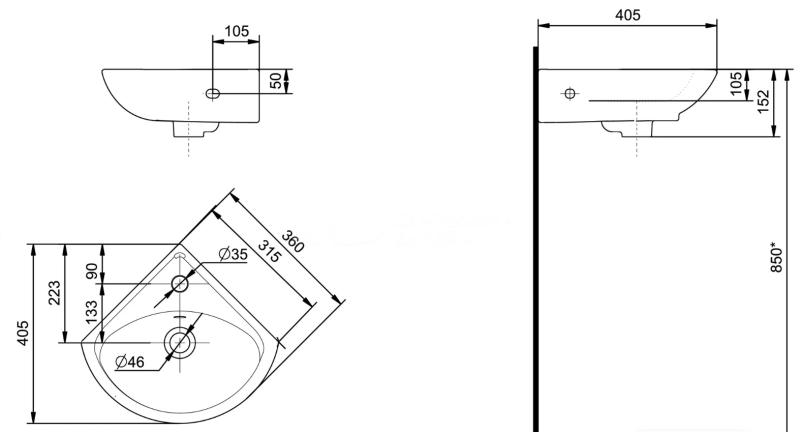Установка раковины с пьедесталом / полупьедесталом (тюльпан) + смеситель