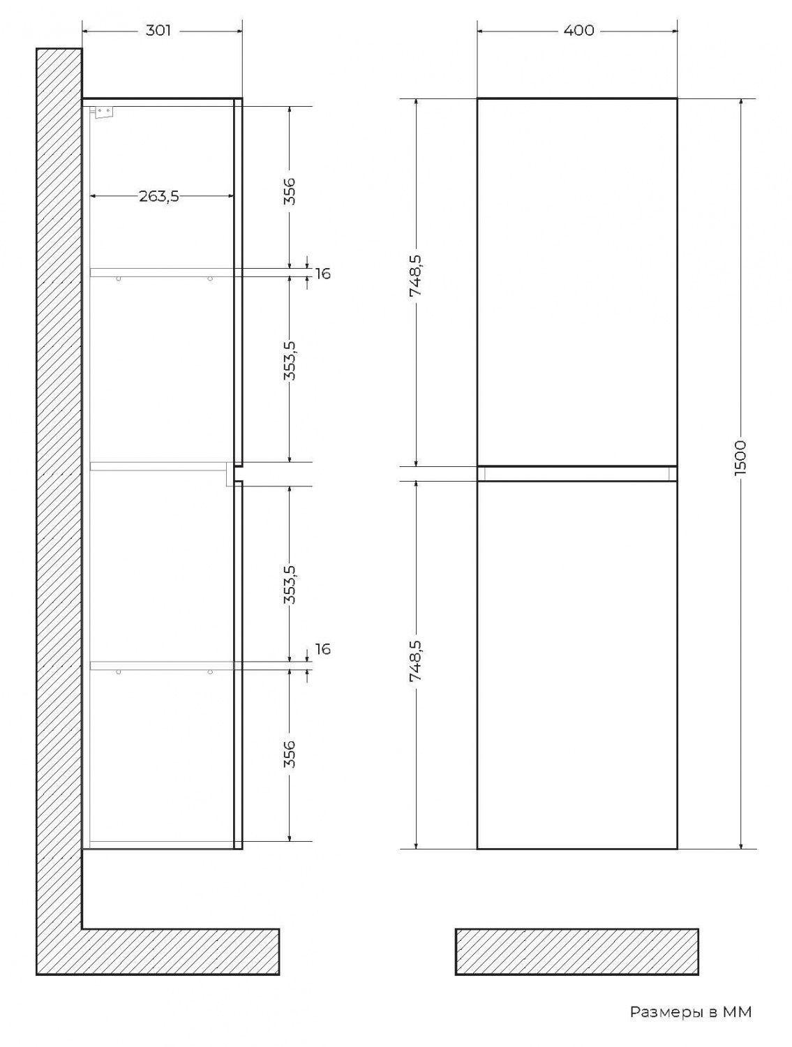 Шкаф пенал Art&Max Elegant 40 AM-ELEGANT-1500-2А-SO-NM-LED подвесной