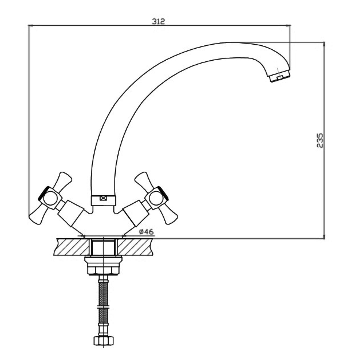 Стандартный смеситель с подключением только к водопроводу (холодная и горячая вода). Не имеет возможности подключения к системе фильтрации питьевой воды. Для возможности использования бытового фильтра с питьевой водой необходима установка отдельного крана.