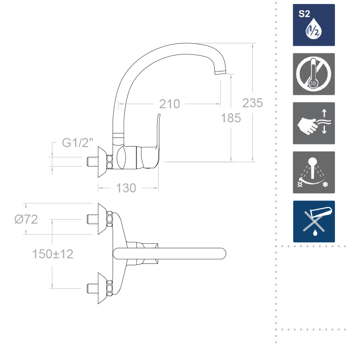 Для кухни важно подобрать устройство, которое обеспечит удобство, и высокое качество мытья посуды любого размера и при этом предотвратит разбрызгивание воды. Высота излива обязательно должна соответствовать глубине чаши. Если излив располагается точно над центром раковины, процедура мытья посуды не будет сопровождаться такой неприятностью, как летящие во все стороны брызги. Смесители для кухни могут быть как с установкой на мойку/столешницу, так и настенного монтажа.