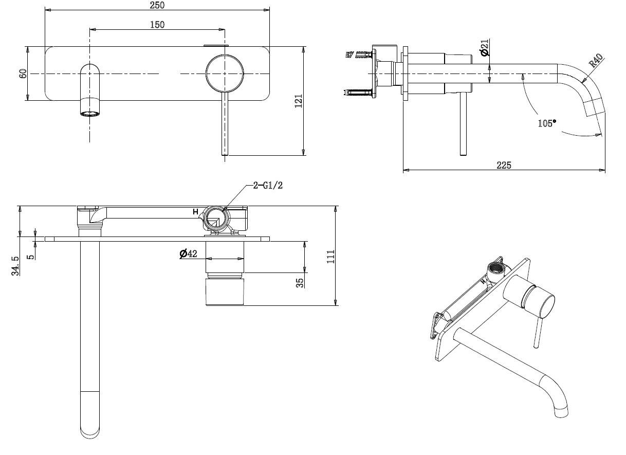 Длиной излива принято называть расстояние от основания излива до начала аэратора. Длина излива у настенных смесителей указана от стены до конца излива/аэратора.
