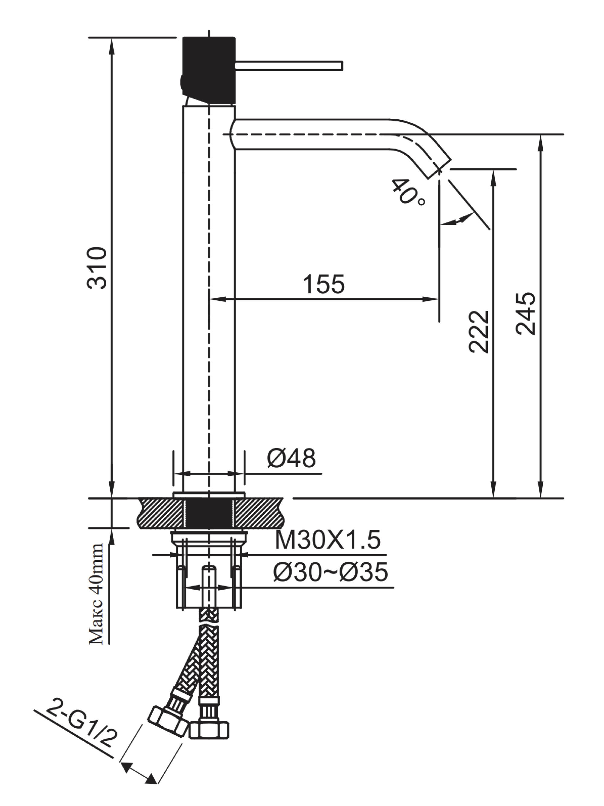 • Высота излива: