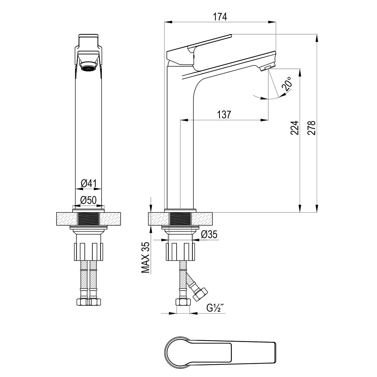 Смеситель для раковины RS29 RS29-14 цвет Хром