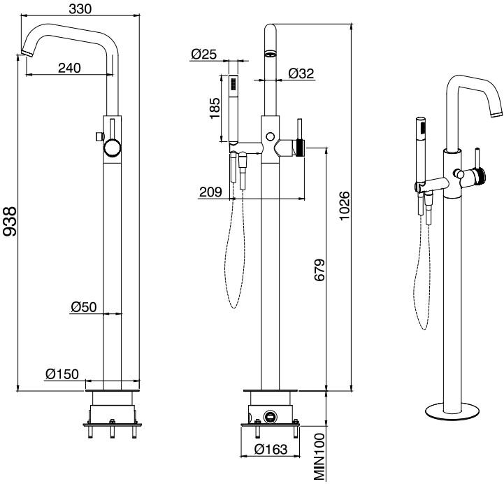 Смесители, которые устанавливаются на пол, обладают высоким изливом и подключены к системе водоснабжения снизу – необходима подпольная прокладка трубопроводов в ванной комнате. Чаще всего такие смесители устанавливаются рядом с отдельно стоящими ваннами и раковинами. Устройства могут быть одноногими (рычажное управление) и двуногими (вентильное управление).