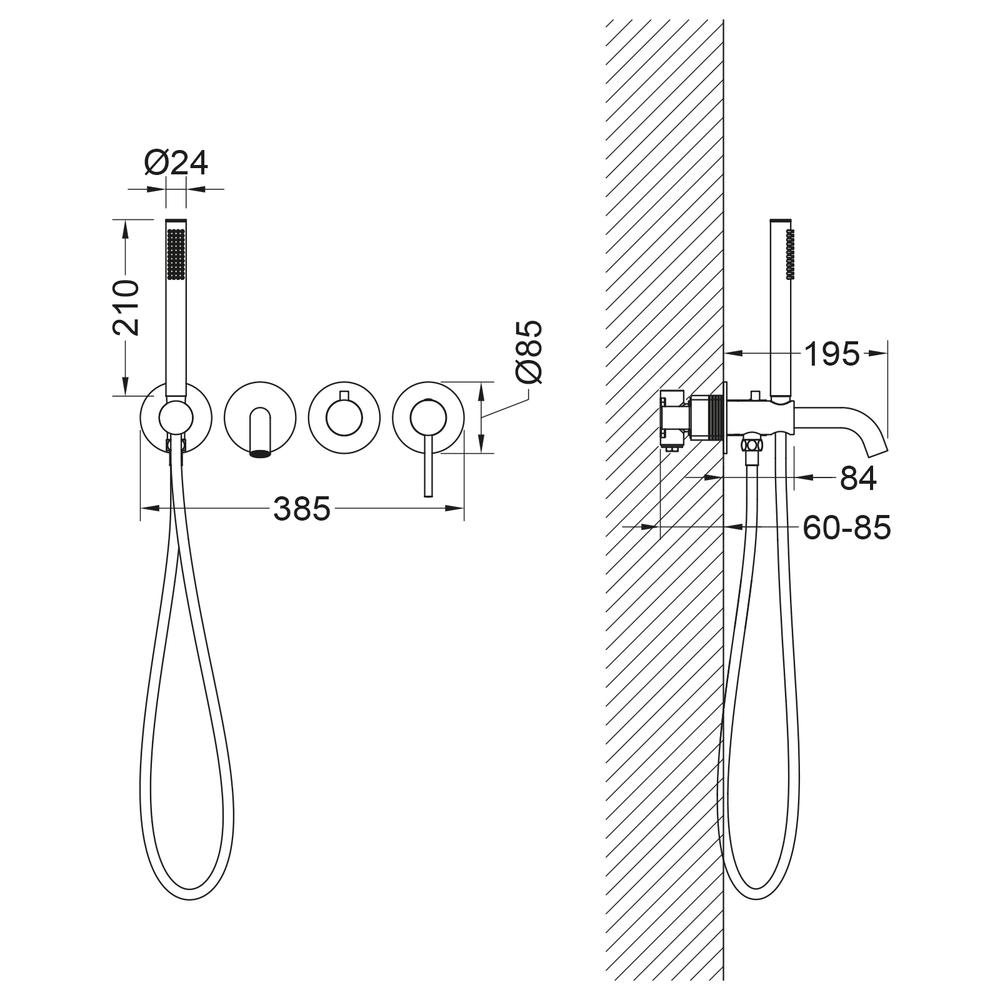 Смесители для ванны с возможностью подключения ручного душа – популярное решение, они устанавливаются на стене, оснащены изливом и предоставляют возможность переключать напор – между изливом и душевой лейкой при необходимости.