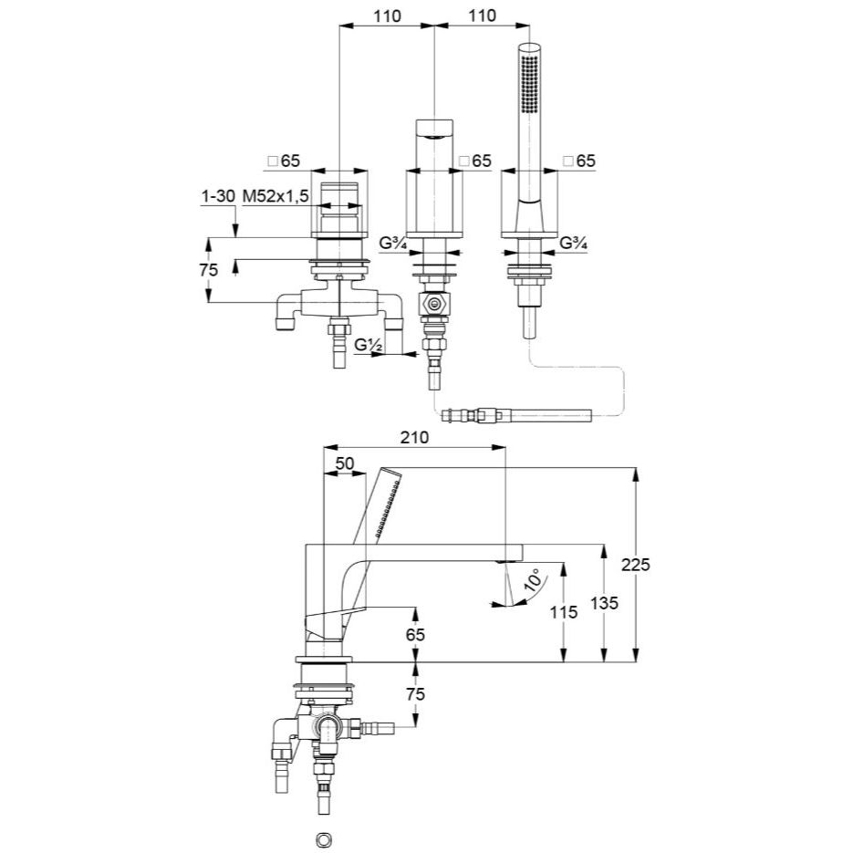 Установка смесителя на борт акриловой ванны (до 4 отверстий)