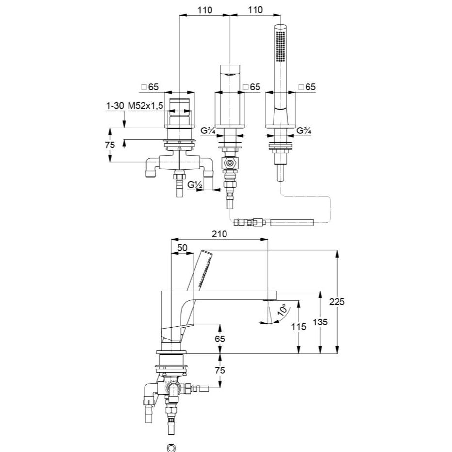 • Ванна: расход воды 23 л/мин при давлении 3 бара.