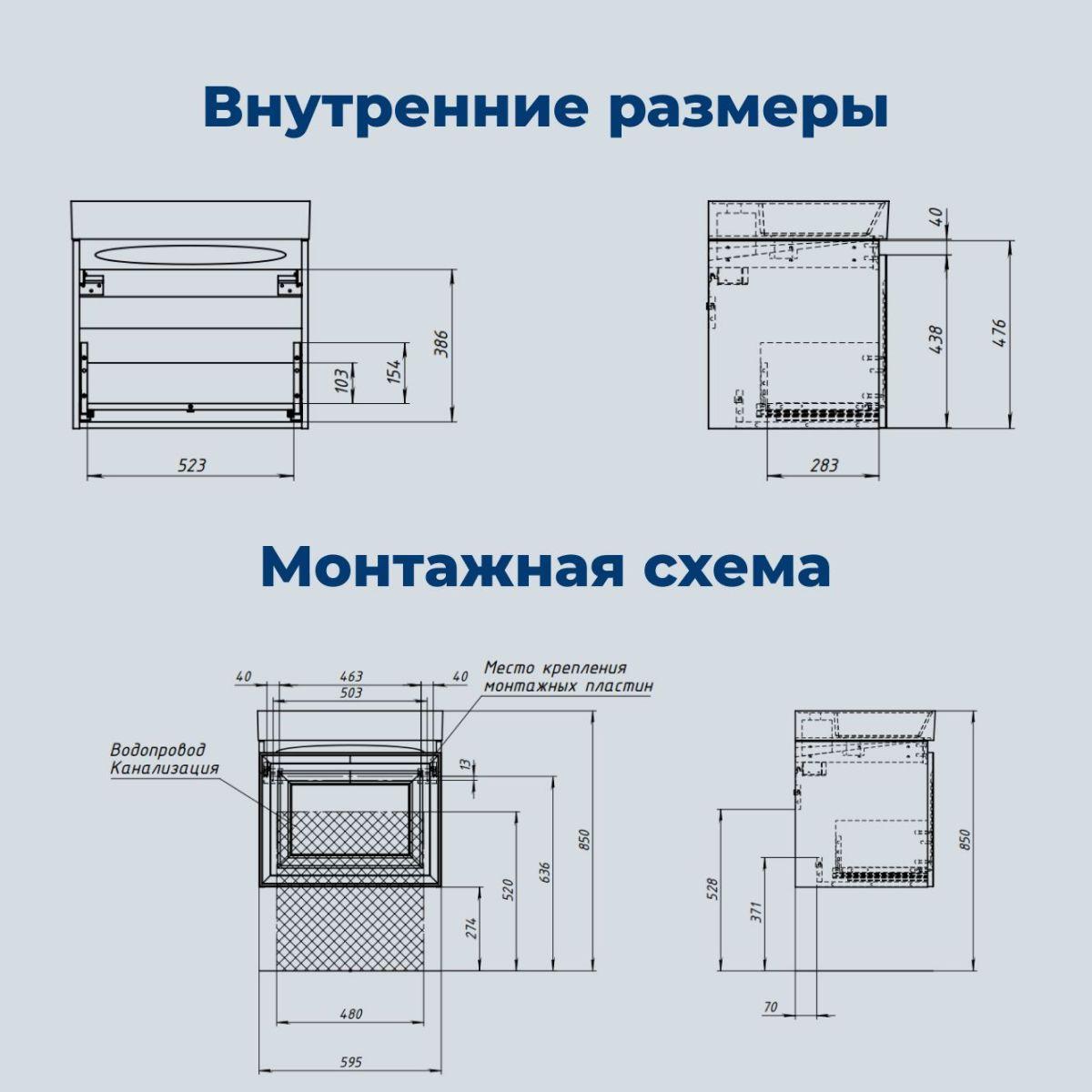 Тумба под раковину Aquanet Агата 60 345486 подвесная