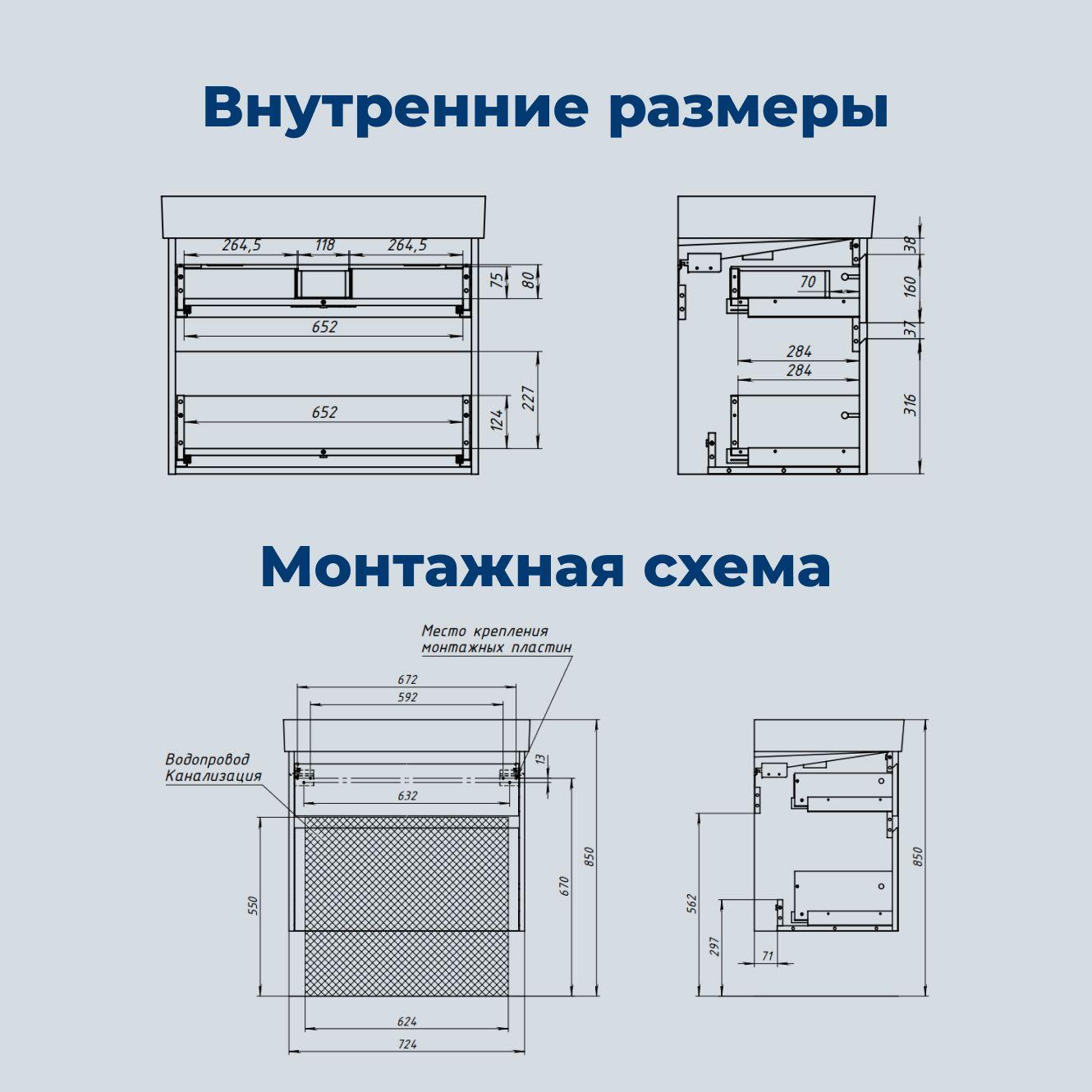 Установка комплекта. Тумба с раковиной (+ смеситель, + сифон), зеркало / зеркало-шкаф до 70 см.