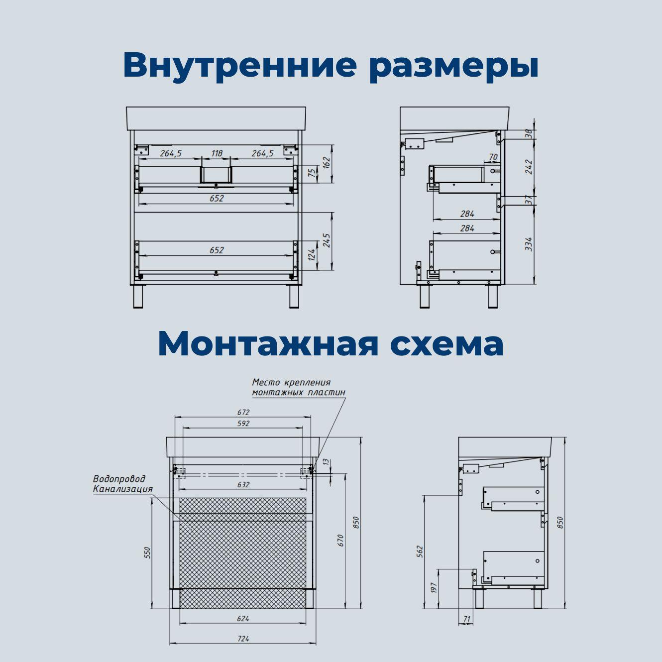 Установка комплекта. Тумба с раковиной (+ смеситель, + сифон), зеркало / зеркало-шкаф до 70 см.