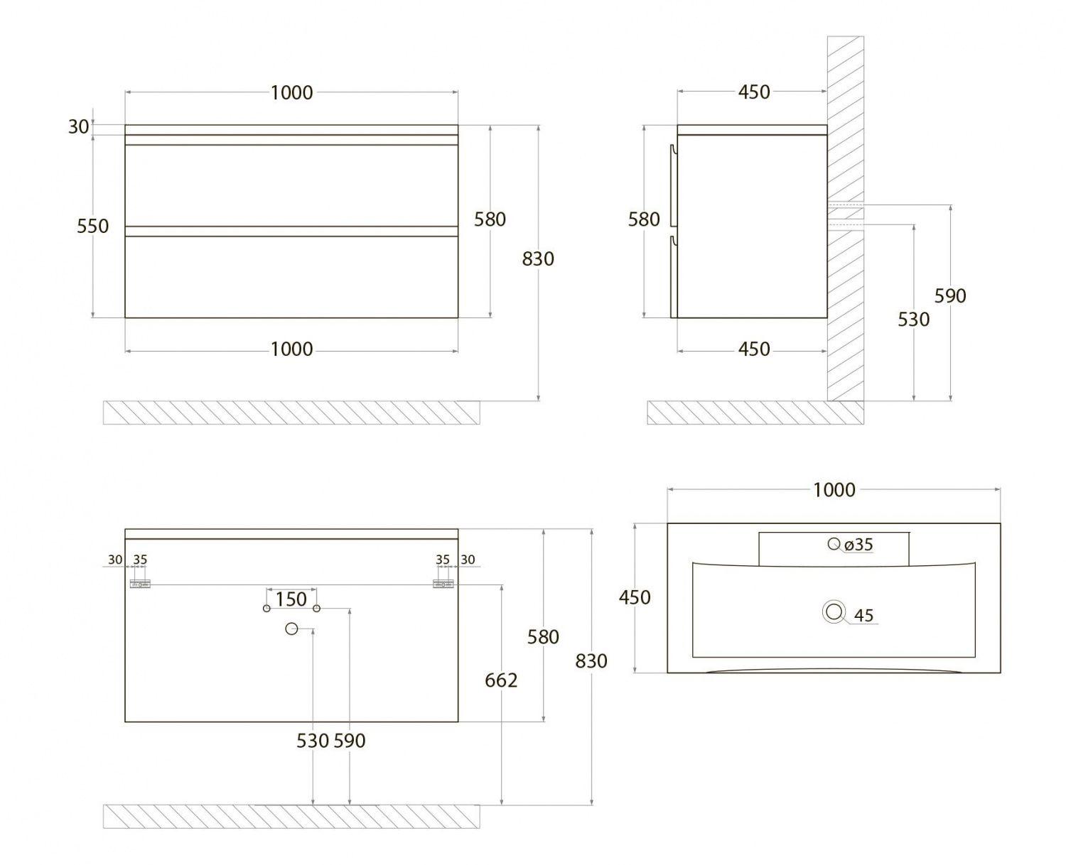 Установка комплекта. Тумба с раковиной (+ смеситель, + сифон), зеркало / зеркало-шкаф до 100 см.