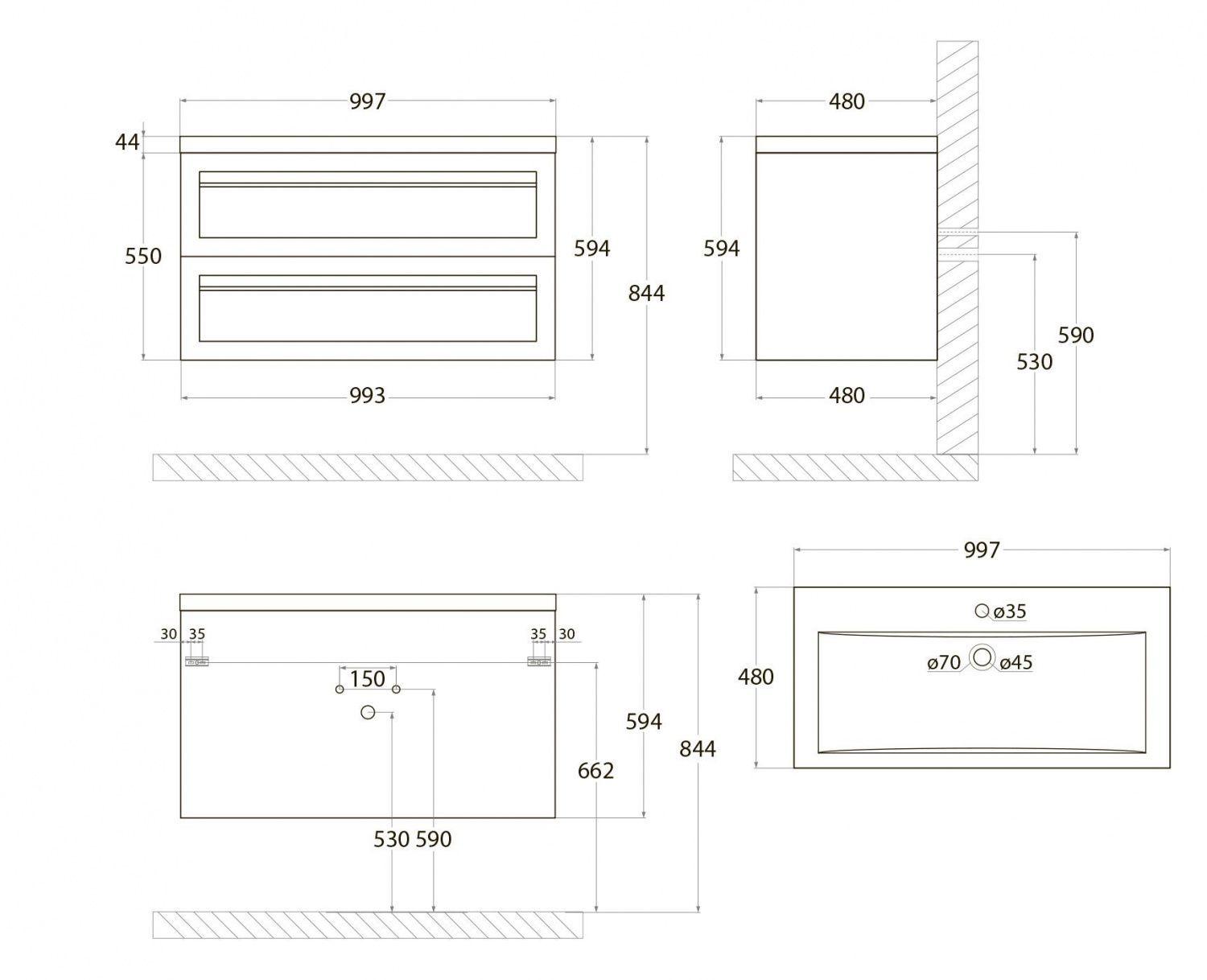 Установка тумбы с раковиной от 91 см. (+ смеситель, + сифон)
