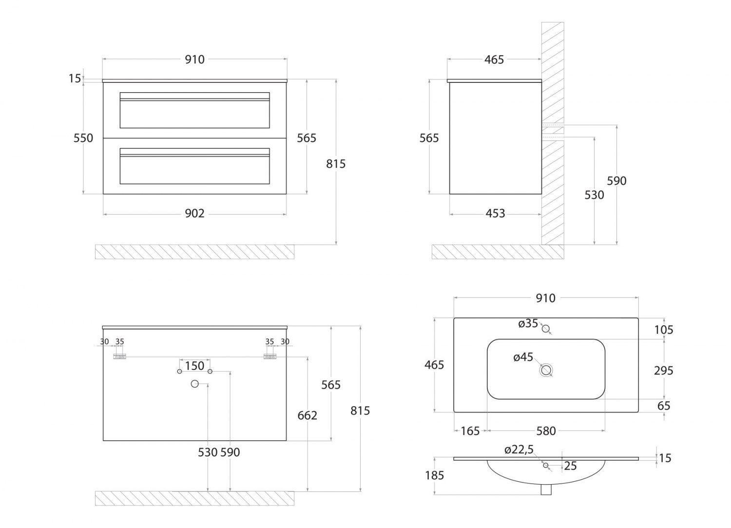 Установка тумбы с раковиной от 91 см. (+ смеситель, + сифон)