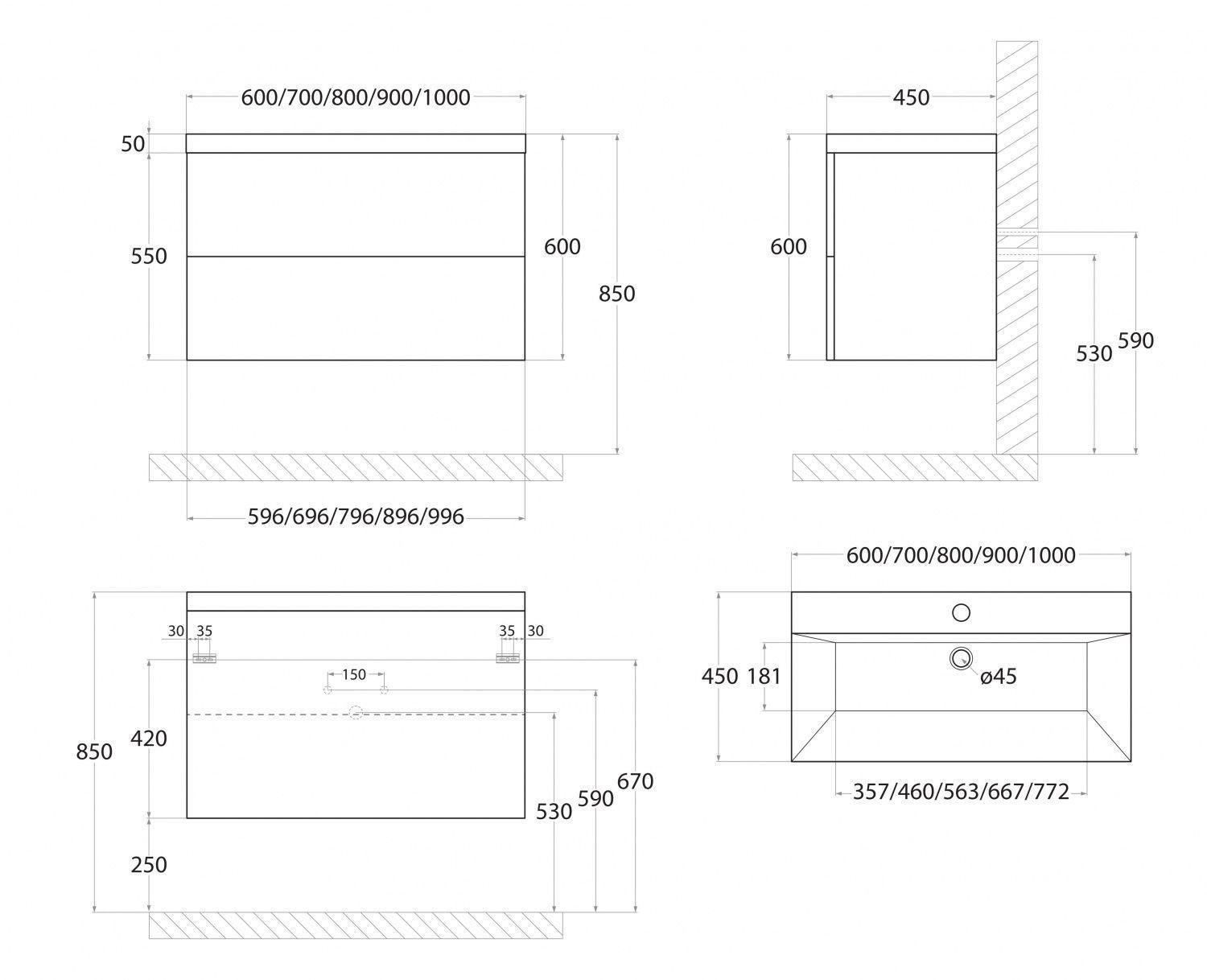 Установка тумбы с раковиной до 90 см. (+ смеситель, + сифон)