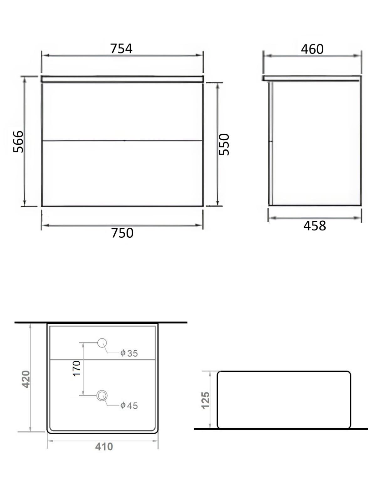 Тумба с раковиной Orange Otto 75 Ot-75TuMDF+B04-405W подвесная
