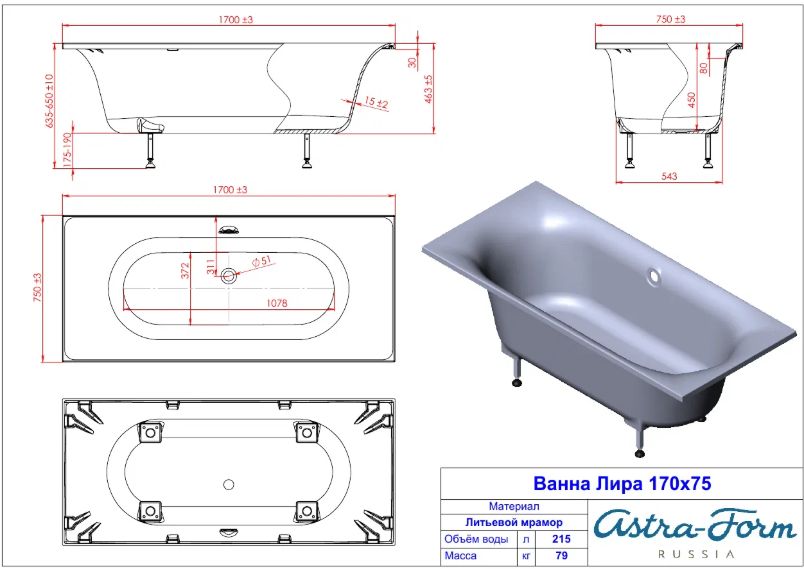 Ванна из искусственного камня Astra Form NONE 170х75 01010076