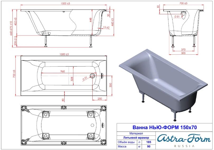 Ванна из искусственного камня Astra Form Нью-Форм 150х70 01010057