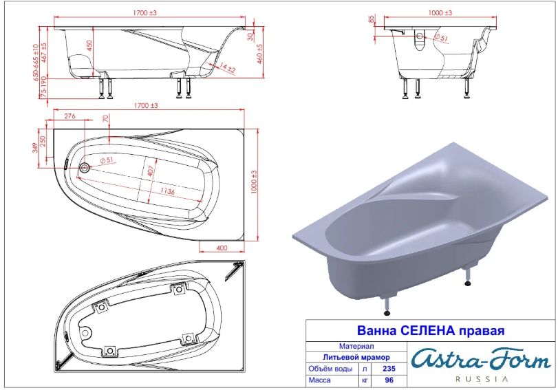 Ванна из искусственного камня Astra Form Селена 170х100 01010081