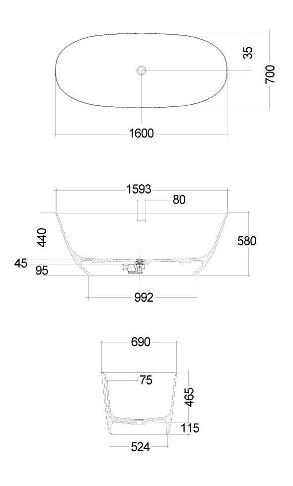 Ванна из искусственного камня Kludi Resa O 160x70 51BF0353