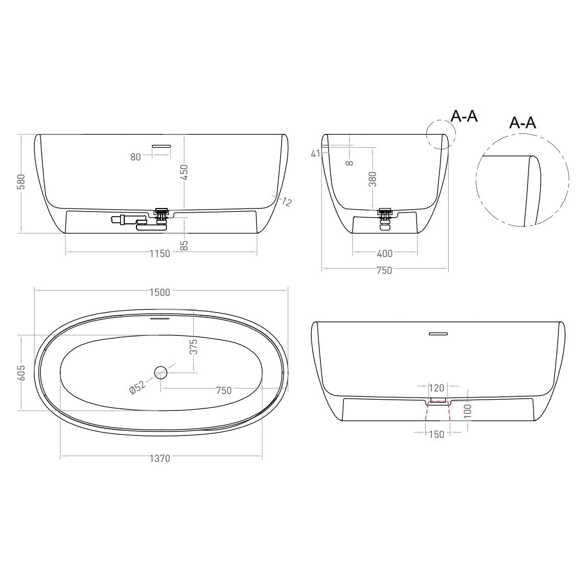 Ванна из искусственного камня Salini Luce 150х75 100122M
