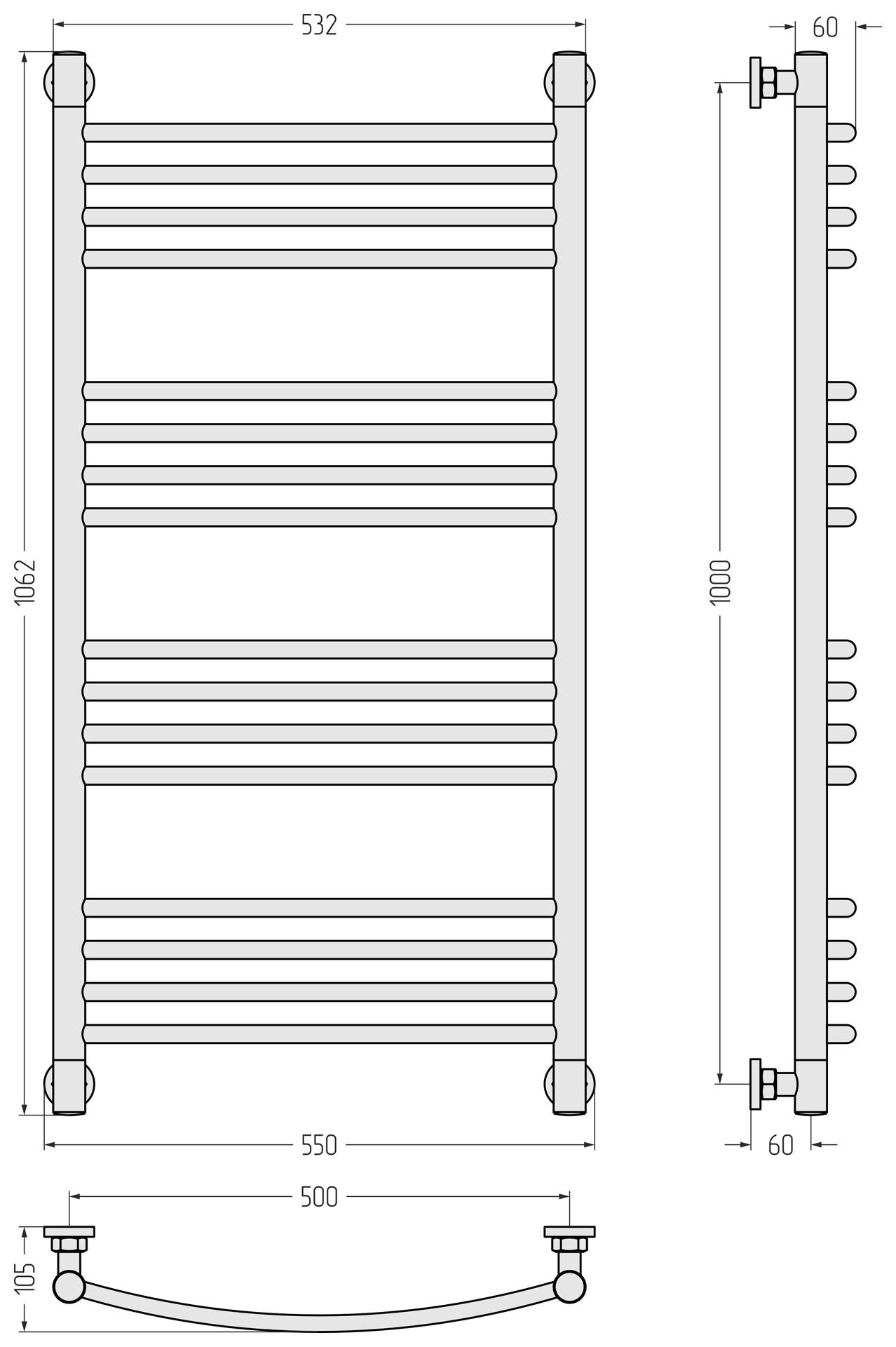 Водяной полотенцесушитель Сунержа Богема+ выгнутая 80x40 022-0221-8040