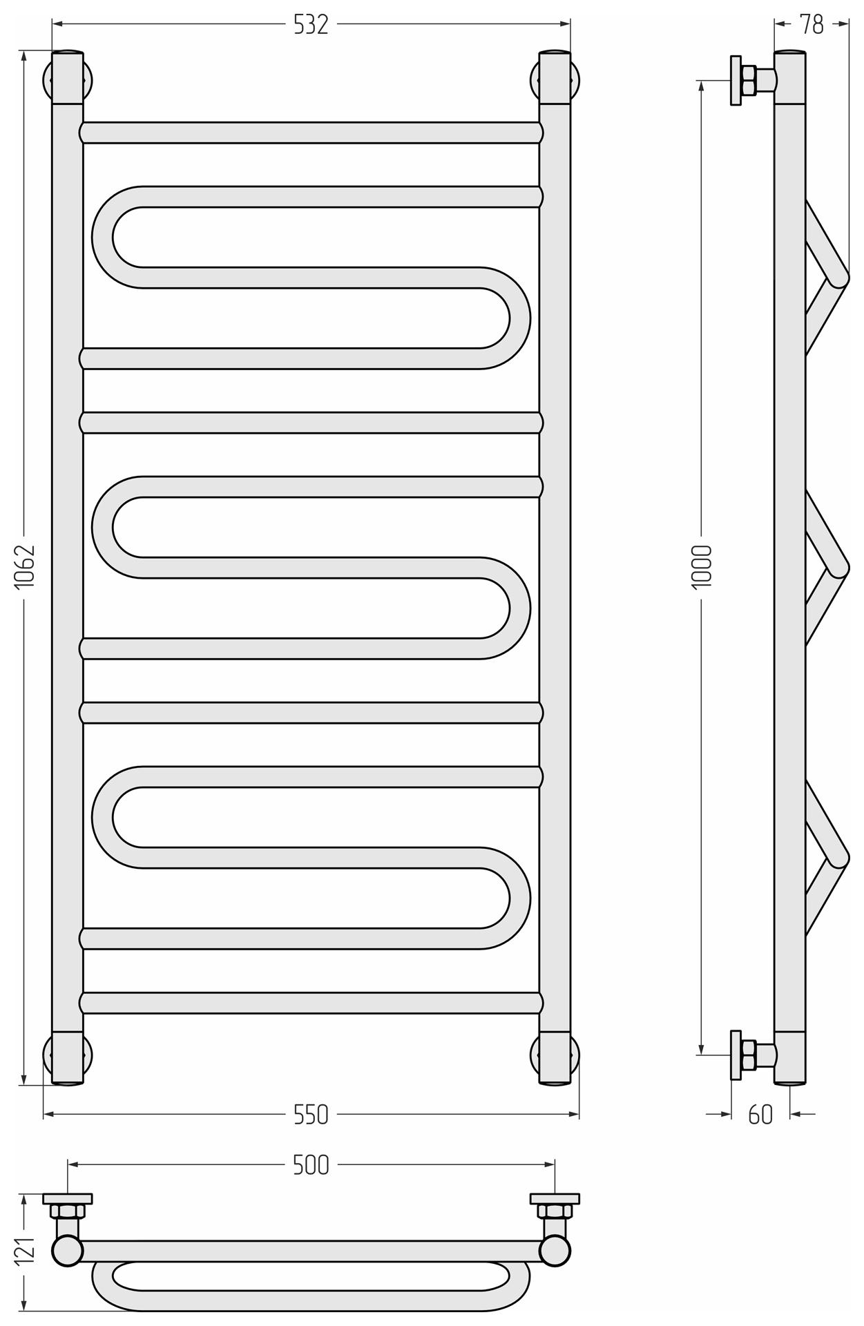 Водяной полотенцесушитель Сунержа Ш-образный+ 60x50 32-4014-6050