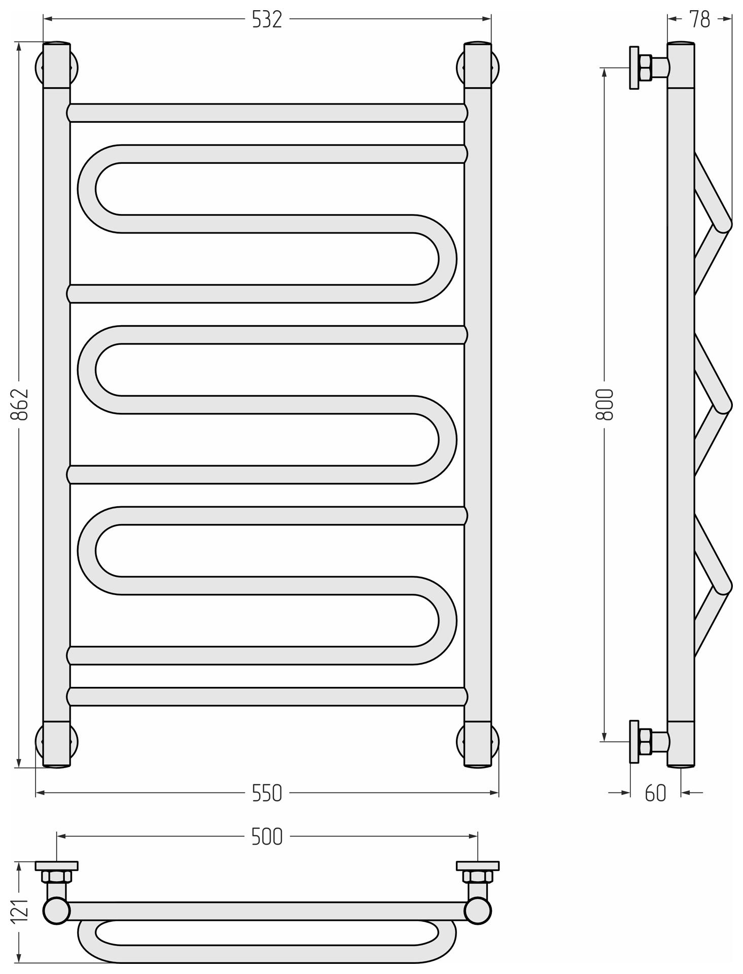Водяной полотенцесушитель Сунержа Ш-образный+ 60x60 020-4014-6060