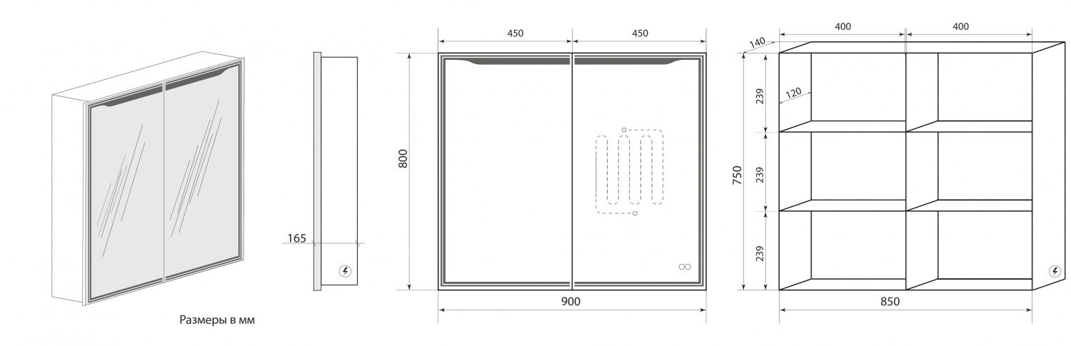 Зеркальный шкаф Art&Max Merano 90 R AM-Mer-900-800-1D-R-DS-F с подсветкой