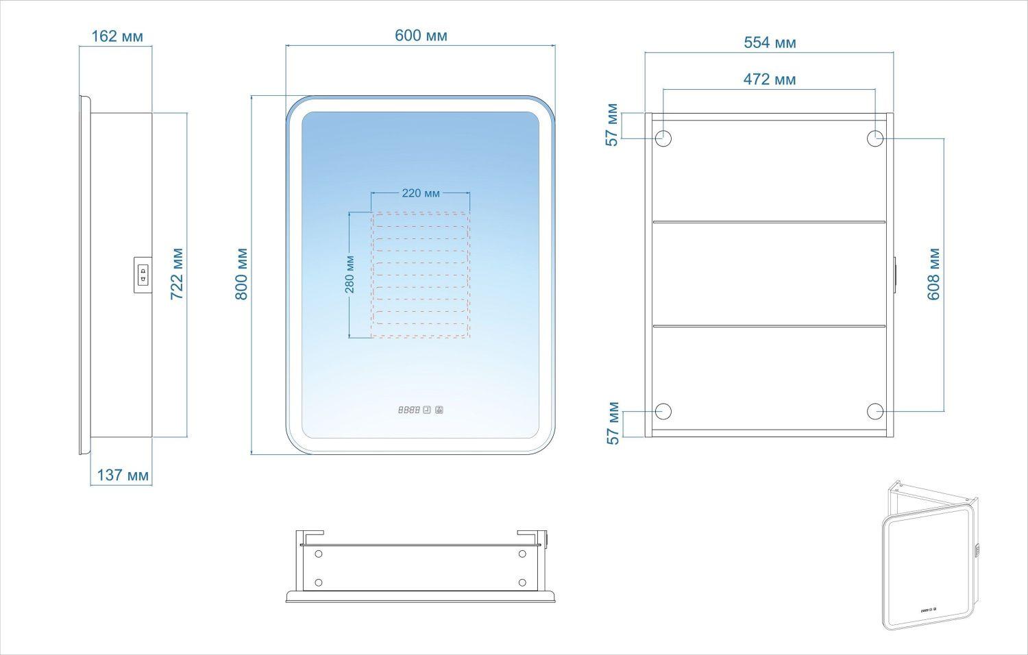 Установка зеркала-шкафа от 101 см.