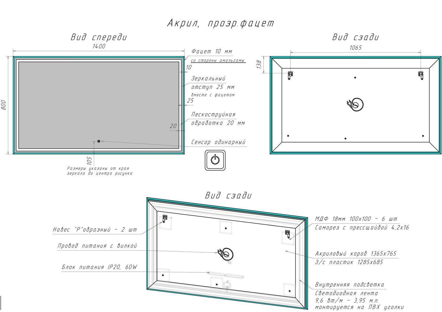 Установка зеркала от 100 см.